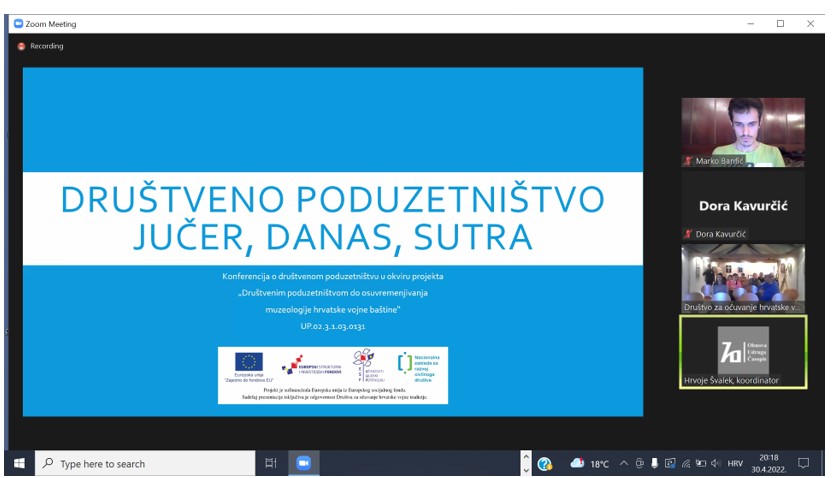 Tijekom provedbe projekta „Društvenim poduzetništvom do osuvremenjivanja muzeologije hrvatske vojne baštine“ UP.02.3.1.03.0131, ukupne vrijednosti projekta 1.018.147,10 kn od čega EU sufinanciranje projekta iz Europskog socijalnog fonda iznosi 85%, Društvo za očuvanje hrvatske vojne tradicije zaključno s konferencijom „Društveno poduzetništvo – jučer, danas, sutra“ završilo je „Tjedan društvenog poduzetništva“.